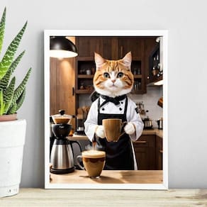 Quadro decorativo café gatinho barista 24x18cm Moldura: madeira branca Informações do produto tire todas as suas dúvidas no descritivo abaixo: decoração para quarto, sala, cozinha, escritório, área gourmet e muito mais. Chega de paredes vazias medidas - cada peça tem 24x18cm a5 . Material do papel - papel fotográfico brilhante de altíssima resolução acabamento - todos os quadros são acompanhados de uma película de acetato para proteção da imagem. - os quadros são embalados de forma segura com plástico bolha com camada dupla de acordo com o tamanho dos quadros. - de 3 meses. Meu quadro chegou. Como posso fixá-lo Você precisa apenas de um martelo e um prego, pois os quadros já vão acompanhados de penduradores. Esta é a forma mais indicada. Caso prefira, você pode utilizar uma fita dupla face neste caso, sugerimos de alta qualidade para evitar que descole e seu quadro caia . Como posso limpar meu quadro A limpeza é feita como um móvel comum da sua casa. Apenas um pano seco ou espanador são suficientes para tal Marca: Não Informado Ean: 7895252984276