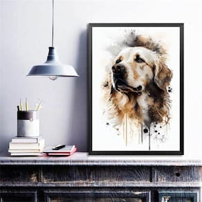 Quadro decorativo cão golden retriever aquarela 33x24cm