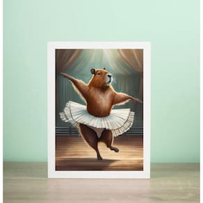 Quadro decorativo capivara bailarina 24x18cm - com vidro Cor: moldura preta Informações do produto tire todas as suas dúvidas no descritivo abaixo: decoração para quarto, sala, cozinha, escritório, área gourmet e muito mais. Chega de paredes vazias medidas - cada peça tem 24x18cm a5 . Material do papel - papel fotográfico brilhante de altíssima resolução acabamento - todos os quadros são acompanhados de vidro para proteção da imagem. - moldura em madeira maciça na cor preta ou branca conforme produto escolhido e pendurador . - os quadros são embalados de forma segura com plástico bolha com camada dupla de acordo com o tamanho dos quadros. Garantia - garantia de 3 meses. Meu quadro chegou. Como posso fixá-lo Você precisa apenas de um martelo e um prego, pois os quadros já vão acompanhados de penduradores. Esta é a forma mais indicada. Como posso limpar meu quadro A limpeza é feita como um móvel comum da sua casa. Apenas um pano seco ou espanador são suficientes para tal