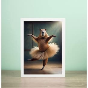 Quadro decorativo capivara balé 24x18cm Cor: moldura preta Informações do produto tire todas as suas dúvidas no descritivo abaixo: decoração para quarto, sala, cozinha, escritório, área gourmet e muito mais. Chega de paredes vazias medidas - cada peça tem 24x18cm a5 . Material do papel - papel fotográfico brilhante de altíssima resolução acabamento - todos os quadros são acompanhados de uma película de acetato para proteção da imagem. - os quadros são embalados de forma segura com plástico bolha com camada dupla de acordo com o tamanho dos quadros. Garantia - garantia de 3 meses. Meu quadro chegou. Como posso fixá-lo Você precisa apenas de um martelo e um prego, pois os quadros já vão acompanhados de penduradores. Esta é a forma mais indicada. Caso prefira, você pode utilizar uma fita dupla face neste caso, sugerimos de alta qualidade para evitar que descole e seu quadro caia . Como posso limpar meu quadro A limpeza é feita como um móvel comum da sua casa. Apenas um pano seco ou espanador são suficientes para tal Ean: 7891234545497