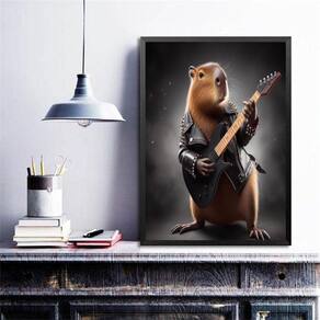 Quadro decorativo capivara do rock 33x24cm Moldura: madeira preta Informações do produto tire todas as suas dúvidas no descritivo abaixo: decoração para quarto, sala, cozinha, escritório, área gourmet e muito mais. Chega de paredes vazias medidas - cada peça tem 33x24cm a4 . Material do papel - papel fotográfico brilhante de altíssima resolução acabamento - todos os quadros são acompanhados de uma película de acetato para proteção da imagem. - os quadros são embalados de forma segura com plástico bolha com camada dupla de acordo com o tamanho dos quadros. Garantia - garantia de 3 meses. Meu quadro chegou. Como posso fixá-lo Você precisa apenas de um martelo e um prego, pois os quadros já vão acompanhados de penduradores. Esta é a forma mais indicada. Caso prefira, você pode utilizar uma fita dupla face neste caso, sugerimos de alta qualidade para evitar que descole e seu quadro caia . Como posso limpar meu quadro A limpeza é feita como um móvel comum da sua casa. Apenas um pano seco ou espanador são suficientes para tal