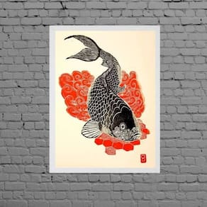 Quadro Decorativo Carpa Japonesa 33X24Cm - Com Vidro