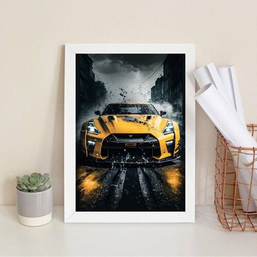 Quadro decorativo carro esportivo preto e amarelo 45x34cm Moldura: madeira branca Informações do produto tire todas as suas dúvidas no descritivo abaixo: decoração para quarto, sala, cozinha, escritório, área gourmet e muito mais. Chega de paredes vazias. Medidas - cada peça tem 45x34cm a3 . Material do papel - papel fotográfico brilhante de altíssima resolução acabamento - todos os quadros são acompanhados de uma película de acetato para proteção da imagem. - os quadros são embalados de forma segura com plástico bolha com camada dupla de acordo com o tamanho dos quadros. Garantia - garantia de 3 meses. Meu quadro chegou. Como posso fixá-lo Você precisa apenas de um martelo e um prego, pois os quadros já vão acompanhados de penduradores. Esta é a forma mais indicada. Caso prefira, você pode utilizar uma fita dupla face neste caso, sugerimos de alta qualidade para evitar que descole e seu quadro caia . Como posso limpar meu quadro A limpeza é feita como um móvel comum da sua casa. Apenas um pano seco ou espanador são suficientes para tal Ean: 7898034563584