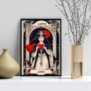 Quadro decorativo carta tarot - love 24x18cm Cor: moldura preta Informações do produto tire todas as suas dúvidas no descritivo abaixo: decoração para quarto, sala, cozinha, escritório, área gourmet e muito mais. Chega de paredes vazias medidas - cada peça tem 24x18cm a5 . Material do papel - papel fotográfico brilhante de altíssima resolução acabamento - todos os quadros são acompanhados de uma película de acetato para proteção da imagem. - os quadros são embalados de forma segura com plástico bolha com camada dupla de acordo com o tamanho dos quadros. - de 3 meses. Meu quadro chegou. Como posso fixá-lo Você precisa apenas de um martelo e um prego, pois os quadros já vão acompanhados de penduradores. Esta é a forma mais indicada. Caso prefira, você pode utilizar uma fita dupla face neste caso, sugerimos de alta qualidade para evitar que descole e seu quadro caia . Como posso limpar meu quadro A limpeza é feita como um móvel comum da sua casa. Apenas um pano seco ou espanador são suficientes para tal Marca: Não Informado Ean: 7891234530073