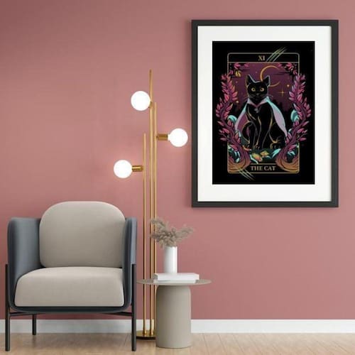 Quadro decorativo carta the cat - 60x48cm Moldura: madeira preta Informações do produto tire todas as suas dúvidas no descritivo abaixo: decoração para quarto, sala, cozinha, escritório, área gourmet e muito mais. Chega de paredes vazias medidas - cada peça tem 60x48cm . Material do papel - papel fotográfico brilhante de altíssima resolução acabamento - todos os quadros são acompanhados de vidro para proteção da imagem. - moldura em madeira maciça na cor preta ou branca conforme produto escolhido e pendurador. - paspatur branco com 7cm de largura - os quadros são embalados de forma segura com plástico bolha com camada dupla de acordo com o tamanho dos quadros. Garantia - garantia de 3 meses. Meu quadro chegou. Como posso fixá-lo Você precisa apenas de um martelo e um prego, pois os quadros já vão acompanhados de penduradores. Esta é a forma mais indicada. Como posso limpar meu quadro A limpeza é feita como um móvel comum da sua casa. Apenas um pano seco ou espanador são suficientes para tal Ean: 7890931059801