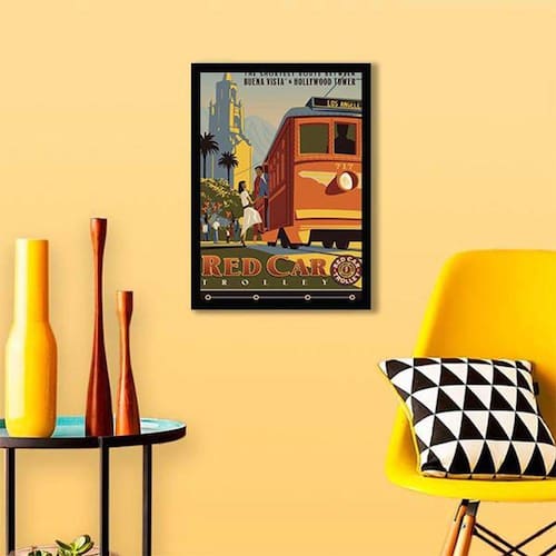 Quadro Decorativo Cartaz Retrô Bonde Los Angeles - Tamanho: A4 (20 x 30) / Acabamento: Película de acetato / Moldura: Madeira preta