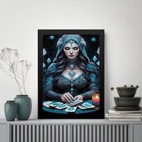 Quadro decorativo cartomante 24x18cm Cor: moldura preta Informações do produto tire todas as suas dúvidas no descritivo abaixo: decoração para quarto, sala, cozinha, escritório, área gourmet e muito mais. Chega de paredes vazias medidas - cada peça tem 24x18cm a5 . Material do papel - papel fotográfico brilhante de altíssima resolução acabamento - todos os quadros são acompanhados de uma película de acetato para proteção da imagem. - os quadros são embalados de forma segura com plástico bolha com camada dupla de acordo com o tamanho dos quadros. Garantia - garantia de 3 meses. Meu quadro chegou. Como posso fixá-lo Você precisa apenas de um martelo e um prego, pois os quadros já vão acompanhados de penduradores. Esta é a forma mais indicada. Caso prefira, você pode utilizar uma fita dupla face neste caso, sugerimos de alta qualidade para evitar que descole e seu quadro caia . Como posso limpar meu quadro A limpeza é feita como um móvel comum da sua casa. Apenas um pano seco ou espanador são suficientes para tal