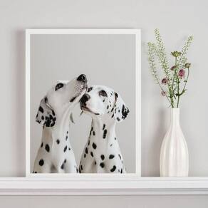 Quadro decorativo casal de dálmatas 24x18cm Cor: moldura branca Informações do produto tire todas as suas dúvidas no descritivo abaixo: decoração para quarto, sala, cozinha, escritório, área gourmet e muito mais. Chega de paredes vazias medidas - cada peça tem 24x18cm a5 . Material do papel - papel fotográfico brilhante de altíssima resolução acabamento - todos os quadros são acompanhados de uma película de acetato para proteção da imagem. - os quadros são embalados de forma segura com plástico bolha com camada dupla de acordo com o tamanho dos quadros. - de 3 meses. Meu quadro chegou. Como posso fixá-lo Você precisa apenas de um martelo e um prego, pois os quadros já vão acompanhados de penduradores. Esta é a forma mais indicada. Caso prefira, você pode utilizar uma fita dupla face neste caso, sugerimos de alta qualidade para evitar que descole e seu quadro caia . Como posso limpar meu quadro A limpeza é feita como um móvel comum da sua casa. Apenas um pano seco ou espanador são suficientes para tal Marca: Não Informado