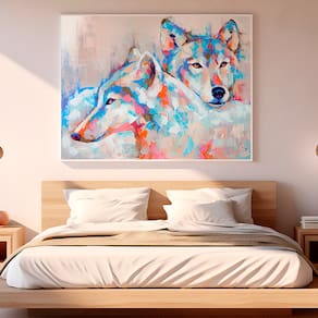 Quadro Decorativo Casal de Lobo Aquarela Moldura Preta e Vidro - 84x54cm -