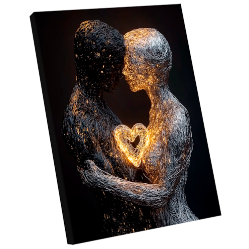 Quadro Decorativo Casal Fios de Metal Borda Infinita - 84x54cm -
