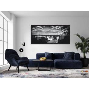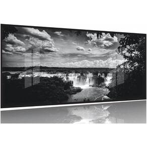 Quadro Decorativo Cataratas Do Iguaçu Preto E Branco 130x60 Moldura Preta 2x2