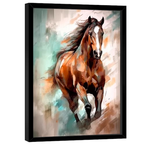 Quadro Decorativo Cavalo Abstrato Moldura Preta - 118x78cm -