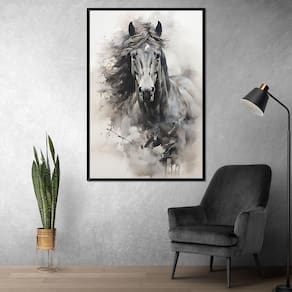 Quadro Decorativo Cavalo Aquarela Moldura Cx Alta 40x60 Titulos Moldura Preta