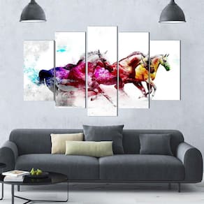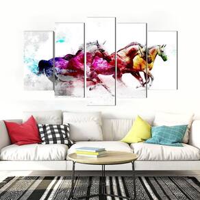 Quadro Decorativo Cavalo Branco Colorido Para Sala 5 Peças