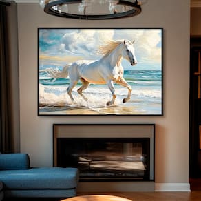 Quadro Decorativo Cavalo Branco na Praia Moldura Branca - 60x40cm -