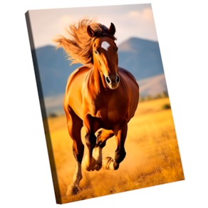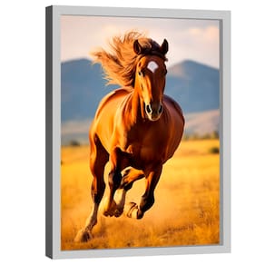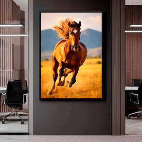 Quadro Decorativo Cavalo Correndo Moldura Branca - 84x54cm -