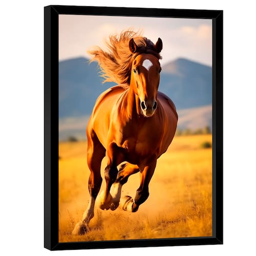 Quadro Decorativo Cavalo Correndo Moldura Preta - 118x78cm -