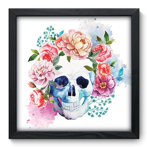 Quadro Decorativo com Moldura e Vidro - Caveira Mexicana - Os quadros da Allodi ficam bem em todos os ambientes, na sala, no quarto, na cozinha, na varanda e até no cantinho do churrasco, dão um toque de qualidade na decoração do ambiente, com gancho na parte de trás para pendurar na parede ou colocar na prateleira. - Fabricados em madeira de alta qualidade (não é madeira pintada e nem MDF) e vidro anti-risco garantindo maior qualidade e beleza da imagem.