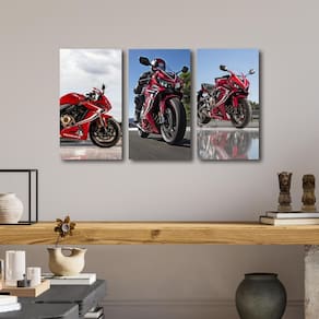 Quadro Decorativo CBR 650 Vermelha Corrida Rodas Motocicleta Desenho: Moto Transforme o ambiente da sua casa ou escritório com nosso Quadro Triplo Decorativo de alta qualidade. Este conjunto impressionante é produzido utilizando a mais avançada tecnologia de impressão e corte a laser, garantindo detalhes nítidos e precisos que capturam a essência de qualquer imagem ou design. Características: Impressão de Alta Qualidade: Nossos quadros apresentam uma impressão de alta definição que realça cores vibrantes e detalhes minuciosos, proporcionando uma estética visualmente deslumbrante. Corte a Laser: O corte a laser oferece um acabamento perfeito e preciso, destacando contornos e formas de maneira impecável. Esta técnica também assegura bordas limpas e uniformes, valorizando ainda mais a elegância do quadro. Material Durável: Produzidos em chapa de MDF de 3 mm, os quadros são leves, resistentes e duráveis, garantindo uma longa vida útil e fácil manuseio. O MDF é um material sustentável que proporciona uma superfície lisa e uniforme para a impressão. Design Versátil: Composto por três partes que podem ser dispostas de diversas maneiras, este quadro triplo se adapta a diferentes estilos de decoração, seja moderno, clássico, minimalista ou contemporâneo. Fácil Instalação: Cada quadro vem com fita dupla face prontos para utilizar, permitindo uma instalação rápida e sem complicações. Adicione um toque de sofisticação e personalidade ao seu espaço com o nosso Quadro Triplo Decorativo. Ideal para salas de estar, quartos, escritórios e qualquer ambiente que necessite de um toque artístico e elegante.