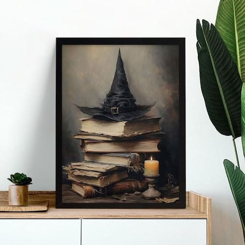 Quadro decorativo chapéu de bruxa 45x34cm Cor: moldura branca Informações do produto tire todas as suas dúvidas no descritivo abaixo: decoração para quarto, sala, cozinha, escritório, área gourmet e muito mais. Chega de paredes vazias. Medidas - cada peça tem 45x34cm a3 . Material do papel - papel fotográfico brilhante de altíssima resolução acabamento - todos os quadros são acompanhados de uma película de acetato para proteção da imagem. - os quadros são embalados de forma segura com plástico bolha com camada dupla de acordo com o tamanho dos quadros. Garantia - garantia de 3 meses. Meu quadro chegou. Como posso fixá-lo Você precisa apenas de um martelo e um prego, pois os quadros já vão acompanhados de penduradores. Esta é a forma mais indicada. Caso prefira, você pode utilizar uma fita dupla face neste caso, sugerimos de alta qualidade para evitar que descole e seu quadro caia . Como posso limpar meu quadro A limpeza é feita como um móvel comum da sua casa. Apenas um pano seco ou espanador são suficientes para tal