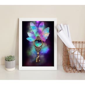 Quadro decorativo chave mágica - arquétipo 45x34cm - com vidro Moldura: madeira preta Informações do produto tire todas as suas dúvidas no descritivo abaixo: decoração para quarto, sala, cozinha, escritório, área gourmet e muito mais. Chega de paredes vazias medidas - cada peça tem 45x34cm a3 . Material do papel - papel fotográfico brilhante de altíssima resolução acabamento - todos os quadros são acompanhados de vidro para proteção da imagem. - moldura em madeira maciça na cor preta ou branca conforme produto escolhido e pendurador . - os quadros são embalados de forma segura com plástico bolha com camada dupla de acordo com o tamanho dos quadros. Garantia - garantia de 3 meses. Meu quadro chegou. Como posso fixá-lo Você precisa apenas de um martelo e um prego, pois os quadros já vão acompanhados de penduradores. Esta é a forma mais indicada. Como posso limpar meu quadro A limpeza é feita como um móvel comum da sua casa. Apenas um pano seco ou espanador são suficientes para tal Ean: 7893646043073