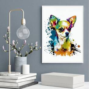 Quadro decorativo chihuahua aquarela 45x34cm Moldura: madeira branca Informações do produto tire todas as suas dúvidas no descritivo abaixo: decoração para quarto, sala, cozinha, escritório, área gourmet e muito mais. Chega de paredes vazias. Medidas - cada peça tem 45x34cm a3 . Material do papel - papel fotográfico brilhante de altíssima resolução acabamento - todos os quadros são acompanhados de uma película de acetato para proteção da imagem. - os quadros são embalados de forma segura com plástico bolha com camada dupla de acordo com o tamanho dos quadros. Garantia - garantia de 3 meses. Meu quadro chegou. Como posso fixá-lo Você precisa apenas de um martelo e um prego, pois os quadros já vão acompanhados de penduradores. Esta é a forma mais indicada. Caso prefira, você pode utilizar uma fita dupla face neste caso, sugerimos de alta qualidade para evitar que descole e seu quadro caia . Como posso limpar meu quadro A limpeza é feita como um móvel comum da sua casa. Apenas um pano seco ou espanador são suficientes para tal Ean: 7890190118615