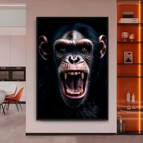 Quadro Decorativo Chimpanzé Nervoso Moldura Preta - 84x54cm -