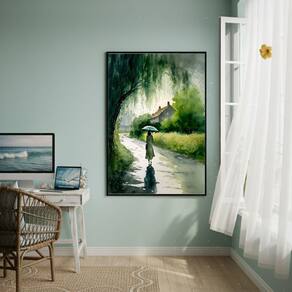Quadro Decorativo Chuva No Interior 70x50cm Mold Preta