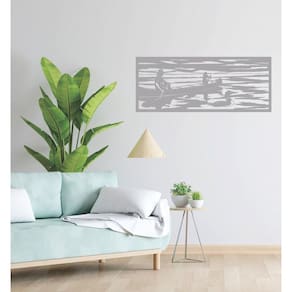 Quadro Decorativo Cinza Mdf Barco Pescadores 40X20Cm