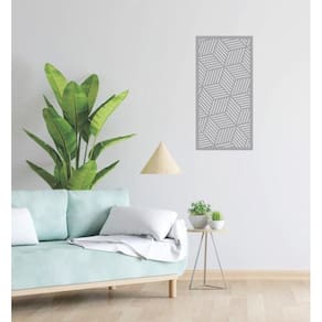 Quadro Decorativo Cinza Mdf Cubos Abstratos 40X20Cm
