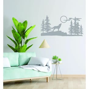 Quadro Decorativo Cinza Mdf Lobo Nas Montanhas 40X20Cm