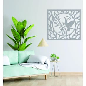 Quadro Decorativo Cinza Mdf Passaro Estilizado 40X20Cm