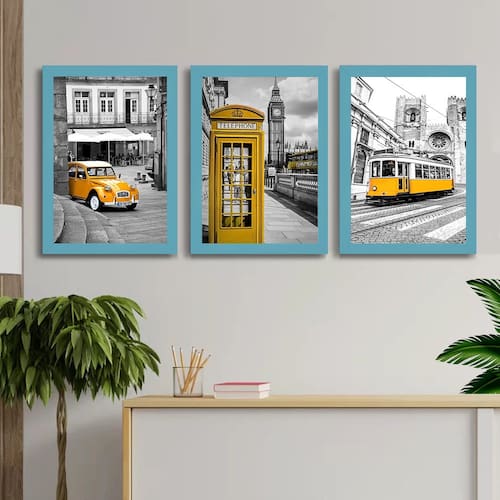 Descrição do produto: O Quadro Decorativo City London Yellow traz a elegância da cidade de Londres com um destaque moderno em amarelo vibrante. Composto por 3 peças de 33x25 cm cada, o conjunto é protegido por vidro, garantindo durabilidade e fácil limpeza. Ideal para salas, escritórios ou ambientes contemporâneos, ele adiciona personalidade e sofisticação à decoração. Benefícios: Alta durabilidade: Moldura resistente e vidro protetor que preserva a arte contra poeira, umidade e pequenos impactos. Design que impressiona:Com cores marcantes e composição moderna, este quadro transforma qualquer parede em um ponto de destaque, elevando o estilo do seu ambiente com personalidade e sofisticação. Praticidade total: Acompanha suporte para pendurar, pronto para decorar semcomplicações. Características:03 Peça(s)Com vidro.Moldura feita de madeira maciça disponíveis nas cores:Preta, Branca, Rosa e Azul TurquesaImagem A4 de alta qualidade protegida contra umidade. Dimensões por peça:Moldura: 25 cm L. 33,7 cm AlturaImagem: 21 cm L. 30 cm AlturaVidro: 0,3 mm Espessura. Marca: Estação Vest
