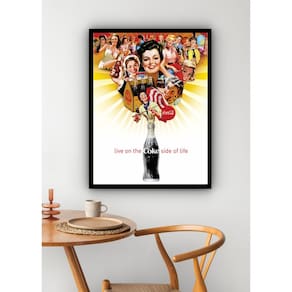 Quadro Decorativo Coca-Cola Garrafa e Mulheres - 70x50cm - Cor: Moldura Preta