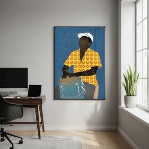 Quadro Decorativo Conguero - Músico de Conga - 70x50cm - Cor: Moldura Branca