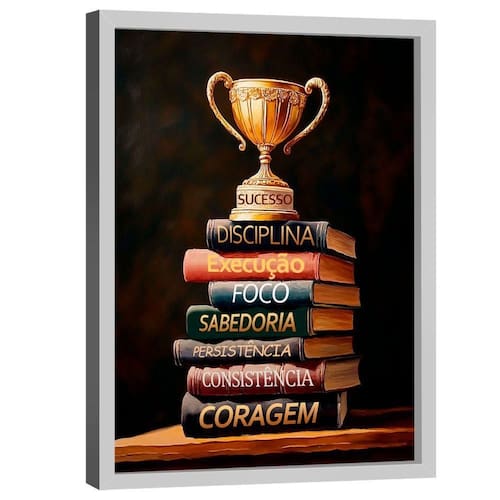 Quadro Decorativo Conhecimento é Sucesso Moldura Preta - 84x54cm -