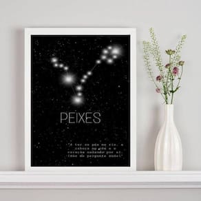 Produzido com materiais de alta qualidade, o Quadro Decorativo Constelação Signo Peixes possui uma moldura de madeira branca que combina com qualquer estilo de decoração. Além disso, ele é acompanhado de um vidro protetor, garantindo a durabilidade da imagem.