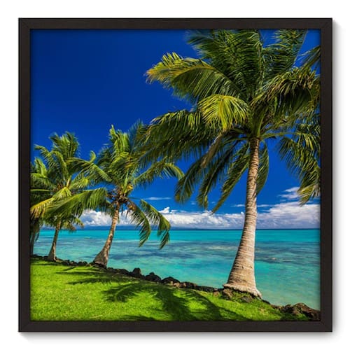Quadro Decorativo com Moldura e Vidro - Coqueiros - Os quadros da Allodi ficam bem em todos os ambientes, na sala, no quarto, na cozinha, na varanda e até no cantinho do churrasco, dão um toque de qualidade na decoração do ambiente, com gancho na parte de trás para pendurar na parede ou colocar na prateleira. - Fabricados em madeira de alta qualidade (não é madeira pintada e nem MDF) e vidro anti-risco garantindo maior qualidade e beleza da imagem.