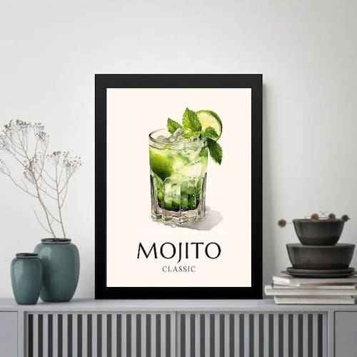 Quadro decorativo coquetel mojito 24x18cm Cor: moldura branca Informações do produto tire todas as suas dúvidas no descritivo abaixo: decoração para quarto, sala, cozinha, escritório, área gourmet e muito mais. Chega de paredes vazias medidas - cada peça tem 24x18cm a5 . Material do papel - papel fotográfico brilhante de altíssima resolução acabamento - todos os quadros são acompanhados de uma película de acetato para proteção da imagem. - os quadros são embalados de forma segura com plástico bolha com camada dupla de acordo com o tamanho dos quadros. Garantia - garantia de 3 meses. Meu quadro chegou. Como posso fixá-lo Você precisa apenas de um martelo e um prego, pois os quadros já vão acompanhados de penduradores. Esta é a forma mais indicada. Caso prefira, você pode utilizar uma fita dupla face neste caso, sugerimos de alta qualidade para evitar que descole e seu quadro caia . Como posso limpar meu quadro A limpeza é feita como um móvel comum da sua casa. Apenas um pano seco ou espanador são suficientes para tal