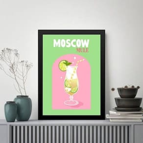 Quadro decorativo coquetel moscow mule 33x24cm Cor: moldura preta Informações do produto tire todas as suas dúvidas no descritivo abaixo: decoração para quarto, sala, cozinha, escritório, área gourmet e muito mais. Chega de paredes vazias medidas - cada peça tem 33x24cm a4 . Material do papel - papel fotográfico brilhante de altíssima resolução acabamento - todos os quadros são acompanhados de uma película de acetato para proteção da imagem. - os quadros são embalados de forma segura com plástico bolha com camada dupla de acordo com o tamanho dos quadros. Garantia - garantia de 3 meses. Meu quadro chegou. Como posso fixá-lo Você precisa apenas de um martelo e um prego, pois os quadros já vão acompanhados de penduradores. Esta é a forma mais indicada. Caso prefira, você pode utilizar uma fita dupla face neste caso, sugerimos de alta qualidade para evitar que descole e seu quadro caia . Como posso limpar meu quadro A limpeza é feita como um móvel comum da sua casa. Apenas um pano seco ou espanador são suficientes para tal