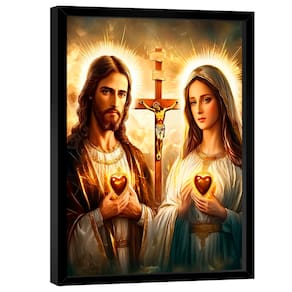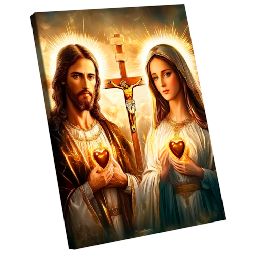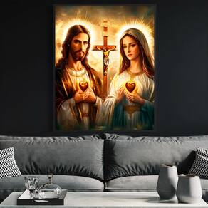 Quadro Decorativo Coração de Jesus e Mari Borda Infinita - 118x78cm -