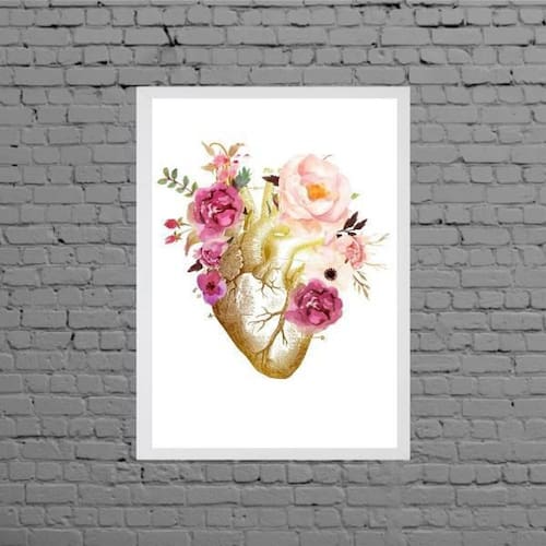 Quadro decorativo coração florido 45x34cm Moldura: madeira branca Informações do produto tire todas as suas dúvidas no descritivo abaixo: decoração para quarto, sala, cozinha, escritório, área gourmet e muito mais. Chega de paredes vazias medidas - cada peça tem 45x34cm a3 . Material do papel - papel fotográfico brilhante de altíssima resolução acabamento - todos os quadros são acompanhados de uma película de acetato para proteção da imagem. - moldura em madeira maciça na cor branca e pendurador móvel que pode ser retirado facilmente caso deseje fixar com fita dupla face. - os quadros são embalados de forma segura com plástico bolha com camada dupla de acordo com o tamanho dos quadros. Marca: Não Informado Ean: 7892091097730