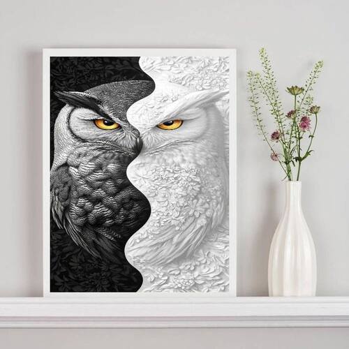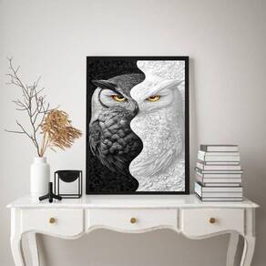 Quadro decorativo coruja branco preto - metades 45x34cm Cor: moldura branca Informações do produto tire todas as suas dúvidas no descritivo abaixo: decoração para quarto, sala, cozinha, escritório, área gourmet e muito mais. Chega de paredes vazias. Medidas - cada peça tem 45x34cm a3 . Material do papel - papel fotográfico brilhante de altíssima resolução acabamento - todos os quadros são acompanhados de uma película de acetato para proteção da imagem. - os quadros são embalados de forma segura com plástico bolha com camada dupla de acordo com o tamanho dos quadros. - de 3 meses. Meu quadro chegou. Como posso fixá-lo Você precisa apenas de um martelo e um prego, pois os quadros já vão acompanhados de penduradores. Esta é a forma mais indicada. Caso prefira, você pode utilizar uma fita dupla face neste caso, sugerimos de alta qualidade para evitar que descole e seu quadro caia . Como posso limpar meu quadro A limpeza é feita como um móvel comum da sua casa. Apenas um pano seco ou espanador são suficientes para tal Ean: 7901039747139