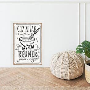 Quadro decorativo cozinha afetiva 24x18cm - com vidro Moldura: madeira preta Informações do produto tire todas as suas dúvidas no descritivo abaixo: decoração para quarto, sala, cozinha, escritório, área gourmet e muito mais. Chega de paredes vazias medidas - cada peça tem 24x18cm a5 . Material do papel - papel fotográfico brilhante de altíssima resolução acabamento - todos os quadros são acompanhados de vidro para proteção da imagem. - moldura em madeira maciça na cor preta ou branca conforme produto escolhido e pendurador . - os quadros são embalados de forma segura com plástico bolha com camada dupla de acordo com o tamanho dos quadros. Garantia - garantia de 3 meses. Meu quadro chegou. Como posso fixá-lo Você precisa apenas de um martelo e um prego, pois os quadros já vão acompanhados de penduradores. Esta é a forma mais indicada. Como posso limpar meu quadro A limpeza é feita como um móvel comum da sua casa. Apenas um pano seco ou espanador são suficientes para tal
