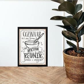 Quadro decorativo cozinha afetiva 45x34cm Moldura: madeira branca Informações do produto tire todas as suas dúvidas no descritivo abaixo: decoração para quarto, sala, cozinha, escritório, área gourmet e muito mais. Chega de paredes vazias. Medidas - cada peça tem 45x34cm a3 . Material do papel - papel fotográfico brilhante de altíssima resolução acabamento - todos os quadros são acompanhados de uma película de acetato para proteção da imagem. - os quadros são embalados de forma segura com plástico bolha com camada dupla de acordo com o tamanho dos quadros. Garantia - garantia de 3 meses. Meu quadro chegou. Como posso fixá-lo Você precisa apenas de um martelo e um prego, pois os quadros já vão acompanhados de penduradores. Esta é a forma mais indicada. Caso prefira, você pode utilizar uma fita dupla face neste caso, sugerimos de alta qualidade para evitar que descole e seu quadro caia . Como posso limpar meu quadro A limpeza é feita como um móvel comum da sua casa. Apenas um pano seco ou espanador são suficientes para tal