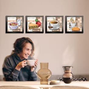 Quadro Decorativo Cozinha Café Manhã Padaria 20x20cm Kit 4 un