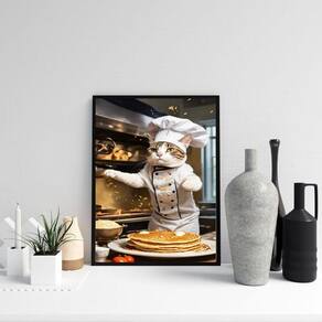 Quadro decorativo cozinha gato chef 24x18cm Cor: moldura branca Informações do produto tire todas as suas dúvidas no descritivo abaixo: decoração para quarto, sala, cozinha, escritório, área gourmet e muito mais. Chega de paredes vazias medidas - cada peça tem 24x18cm a5 . Material do papel - papel fotográfico brilhante de altíssima resolução acabamento - todos os quadros são acompanhados de uma película de acetato para proteção da imagem. - os quadros são embalados de forma segura com plástico bolha com camada dupla de acordo com o tamanho dos quadros. Garantia - garantia de 3 meses. Meu quadro chegou. Como posso fixá-lo Você precisa apenas de um martelo e um prego, pois os quadros já vão acompanhados de penduradores. Esta é a forma mais indicada. Caso prefira, você pode utilizar uma fita dupla face neste caso, sugerimos de alta qualidade para evitar que descole e seu quadro caia . Como posso limpar meu quadro A limpeza é feita como um móvel comum da sua casa. Apenas um pano seco ou espanador são suficientes para tal