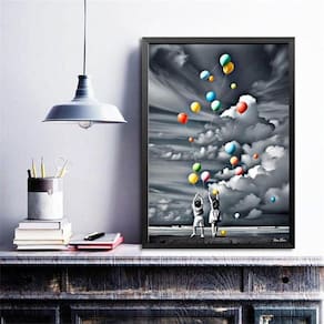 Quadro decorativo crianças com balões coloridos 45x34cm - com vidro Moldura: madeira branca Informações do produto tire todas as suas dúvidas no descritivo abaixo: decoração para quarto, sala, cozinha, escritório, área gourmet e muito mais. Chega de paredes vazias medidas - cada peça tem 45x34cm a3 . Material do papel - papel fotográfico brilhante de altíssima resolução acabamento - todos os quadros são acompanhados de vidro para proteção da imagem. - moldura em madeira maciça na cor preta ou branca conforme produto escolhido e pendurador . - os quadros são embalados de forma segura com plástico bolha com camada dupla de acordo com o tamanho dos quadros. Garantia - garantia de 3 meses. Meu quadro chegou. Como posso fixá-lo Você precisa apenas de um martelo e um prego, pois os quadros já vão acompanhados de penduradores. Esta é a forma mais indicada. Como posso limpar meu quadro A limpeza é feita como um móvel comum da sua casa. Apenas um pano seco ou espanador são suficientes para tal Ean: 7892169917151