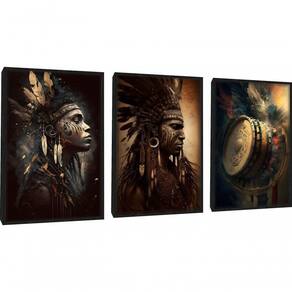 Quadro Decorativo Cultura Indígena Com Moldura Preto