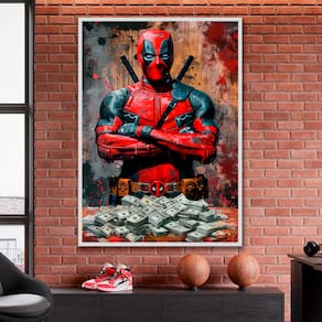 Quadro Decorativo Deadpool Money Moldura Branca - 180x105cm -